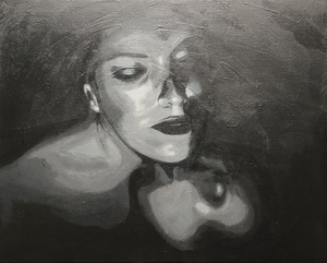2015Acryl op canvas, in baklijst. Geinspireerd op een cover van "Huid" een magazine van een patientenvereniging